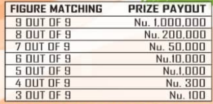 Thuensum Scratch T50 is also a number matching game where buyers match 3 or more numbers and win lowest amount. of Nu.100 and they can win up to Nu. 1,000,000 at the cost of Nu.50 per scratchcard. Thuensum Scratch is a form of pre printed Scratch and Win lottery.This product has been launched in order to provide our buyers a platform for entertainment in addition to their chances of winning.